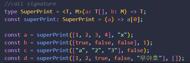 제네릭은 우리가 요구한 대로 signature를 생성해줄 수 있는 도구라고 생각하면 된다. 기억하자! 우리가 작성해야 할 Call signature를 생각하기 전에 타입스크립트가 우리를 위해서 우리의 코드를 공부할 것이다.
