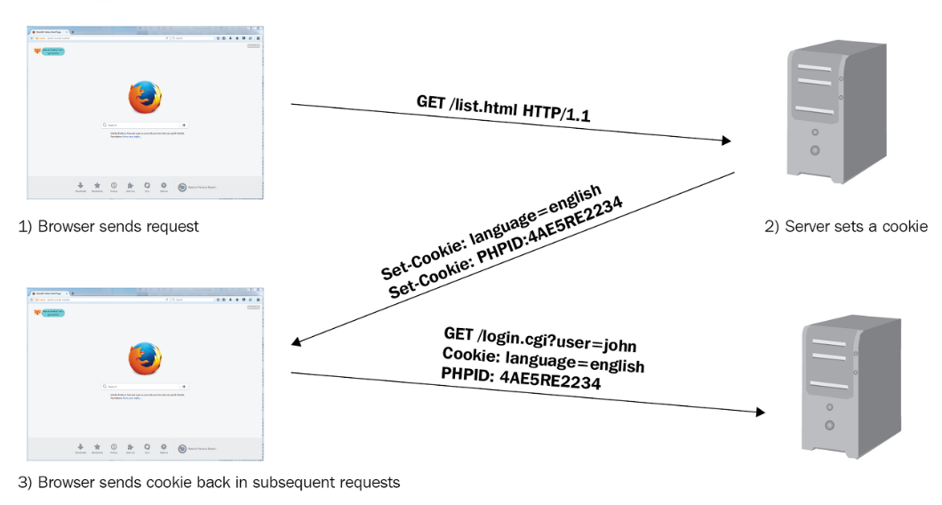 Cookie는 Key-Value 형식의 문자열 덩어리입니다. 클라이언트가 어떤 웹사이트를 방문할 경우, 그 사이트가 사용하고 있는 서버를 통해 클라이언트의 브라우저에 저장되는 작은 기록 정보 파일입니다. 각 사용자의 브라우저에 정보가 저장됨으로 고유 정보 식별이 가능합니다. 또한 쿠키는 인증 뿐만아니라 여러 가지 정보를 저장할 수 있습니다. 예를 들면 웹사이트 언어 설정을 변경하면 서버는 쿠키를 통해 사용자가 선택한 언어를 저장합니다.